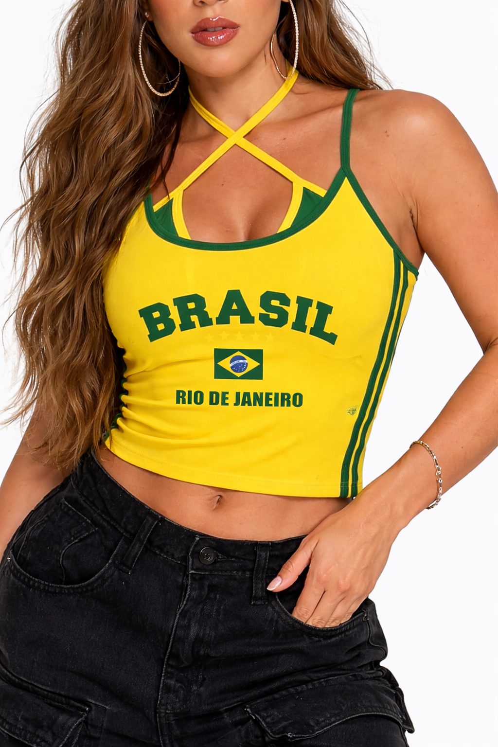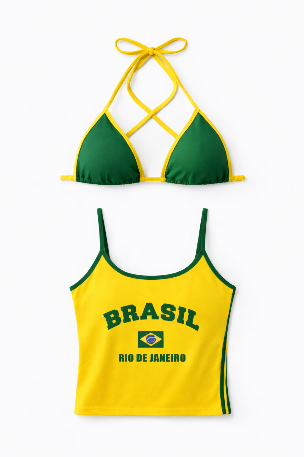 O conjunto feminino Brasil Core traduz a energia da tendência que virou destaque na moda. Com combinação em verde e amarelo, a proposta traz um visual marcante, atual e cheio de personalidade para quem ama peças com presença.